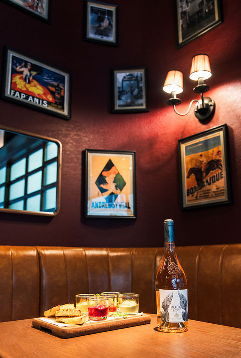 Nissa La Bella Bistro & Wine Bar presents guests with dual spaces: a wine bar, ideal for indulging in wine alongside French amuse bouches, and a laid-back restaurant for relaxed dining. Evoking the elegance of a typical Parisian brasserie its chic interior, cozy red banquettes, and polished wooden furnishings blend seamlessly with rustic accents that pay homage to classic bistros. Vintage posters and tasteful French artwork grace the walls, cocooning patrons in an ambiance of refined allure.